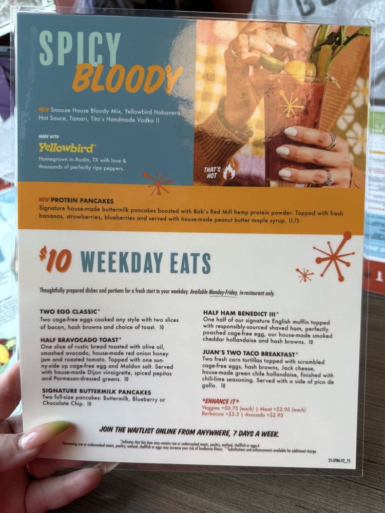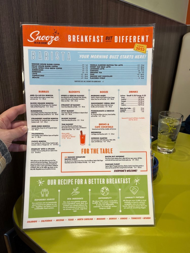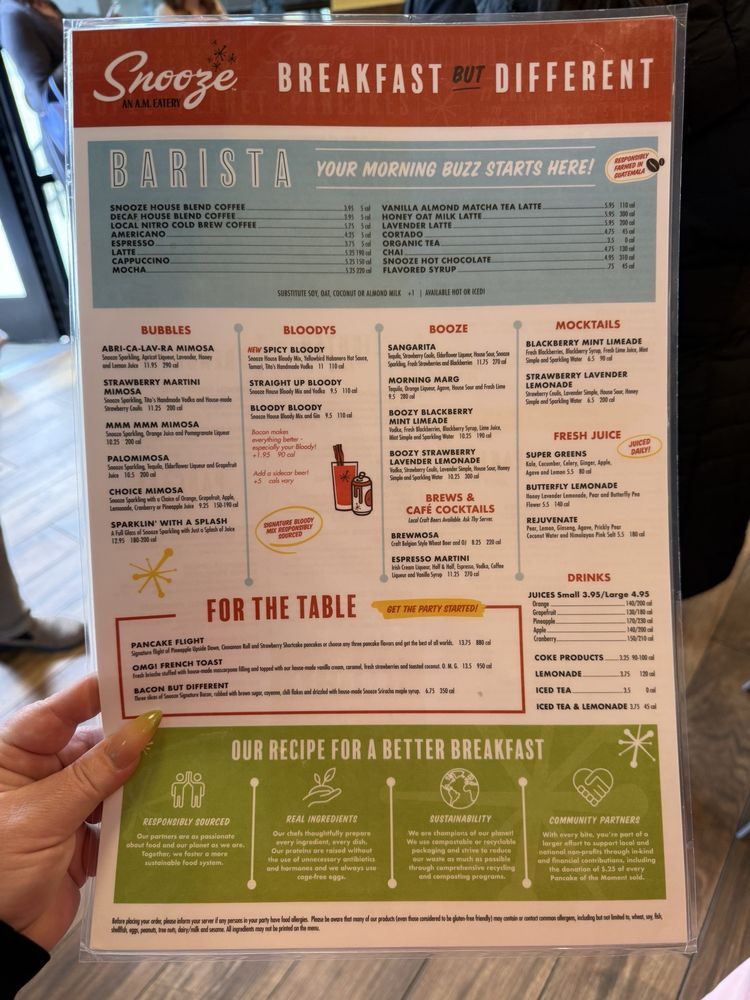 Snooze also boasts a unique drink menu, including refreshing mocktails and revitalizing juices, perfect for pairing with your meal. With a warm atmosphere and attentive service, it's easy to see why guests rave about their experiences. Come visit and discover why Snooze might just become your new favorite breakfast spot!